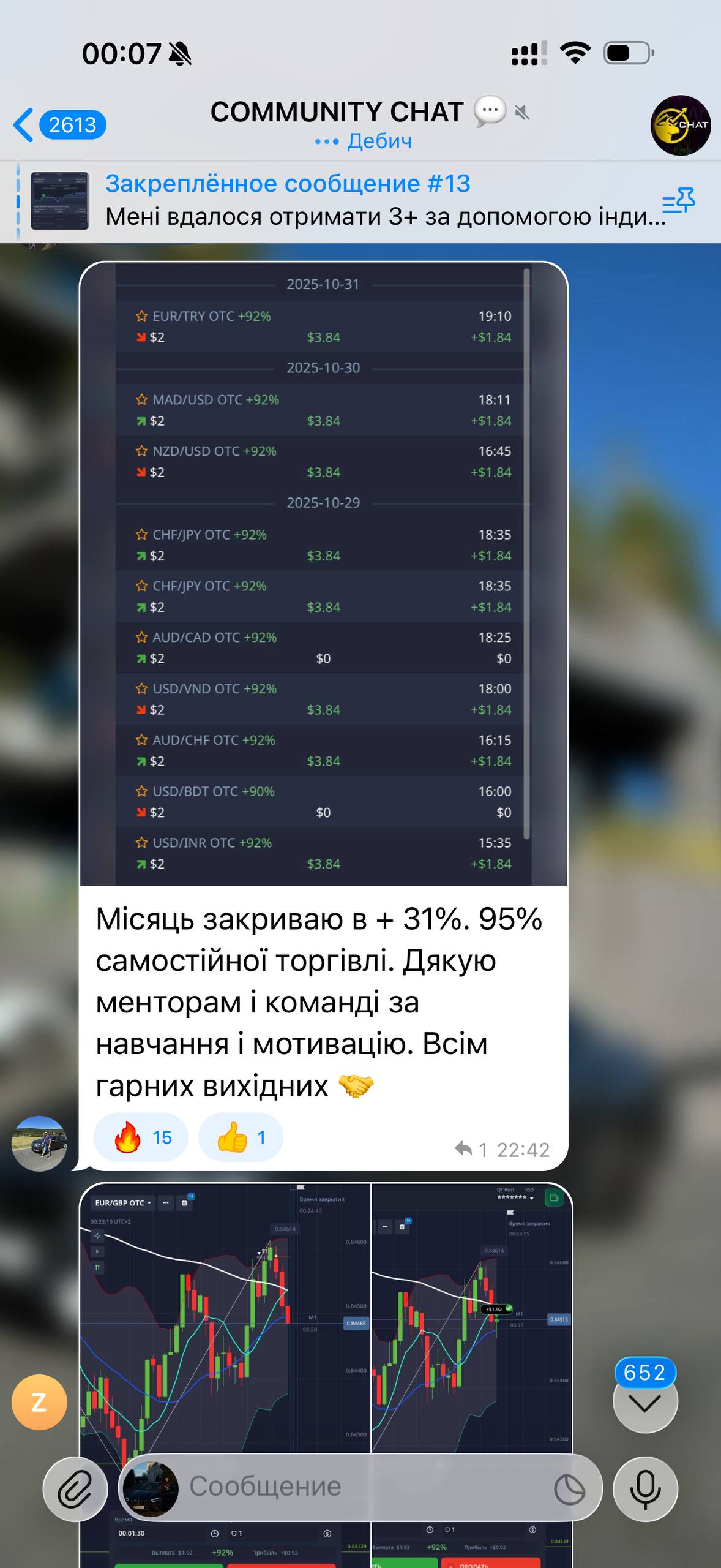 Для мене GB Trade став місцем, де є мотивація продовжувати. Тут адекватні люди, нормальне спілкування і багато корисних порад по ринку. Особливо ціную щоденні розбори ситуацій і пояснення логіки входів.